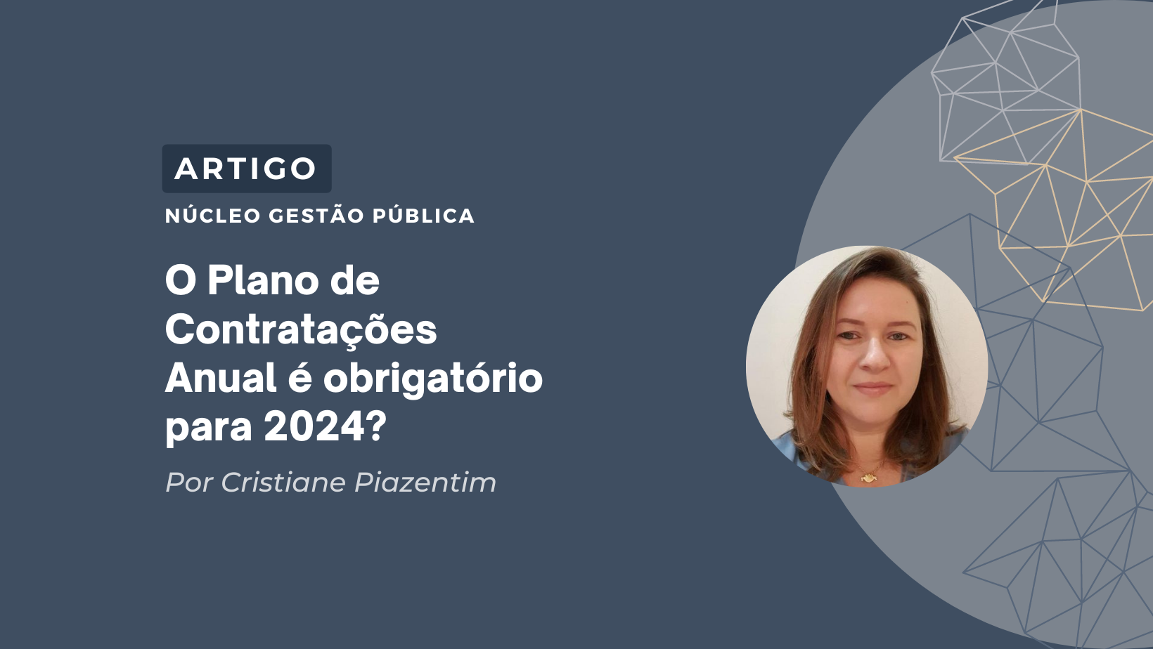 Artigo de Cristiane Piazentim Campanholi A necessidade de planejamento nas contratações públicas é crucial para garantir a eficiência, a transparência e a legalidade no processo de aquisição de bens e serviços pelos órgãos públicos. Um planejamento adequado é essencial para evitar falhas e minimizar riscos, além de possibilitar o melhor aproveitamento dos recursos públicos. [...]